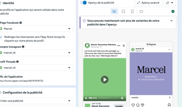 Pilotage de campagnes META notoriété et promotion app générant plus de 168k impressions et touchant 87k personnes uniques, assurant une visibilité large et qualifiée.