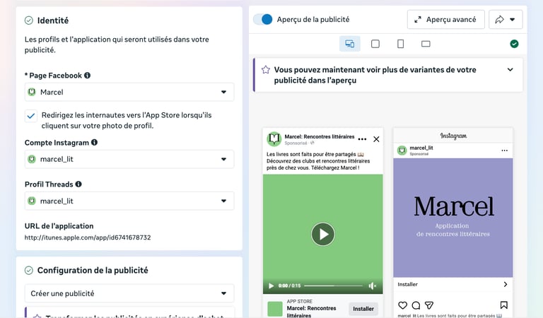 L’enjeu était de structurer une stratégie d’acquisition pour une application encore en évolution, dans un contexte mêlant fortes attentes sur les réseaux sociaux, les newsletters et des contraintes techniques. En tant que cheffe de projet, j’ai assuré la coordination d’équipes aux expertises différentes, recommandé personas/positionnement afin d’aligner l’ensemble des dispositifs d’acquisition. Le projet visait également à orchestrer la valorisation des événements Marcel, à travers les newsletters et la partie BtoB libraires lors de l’Open Factory au 104, dans une logique de croissance et de partenariats.