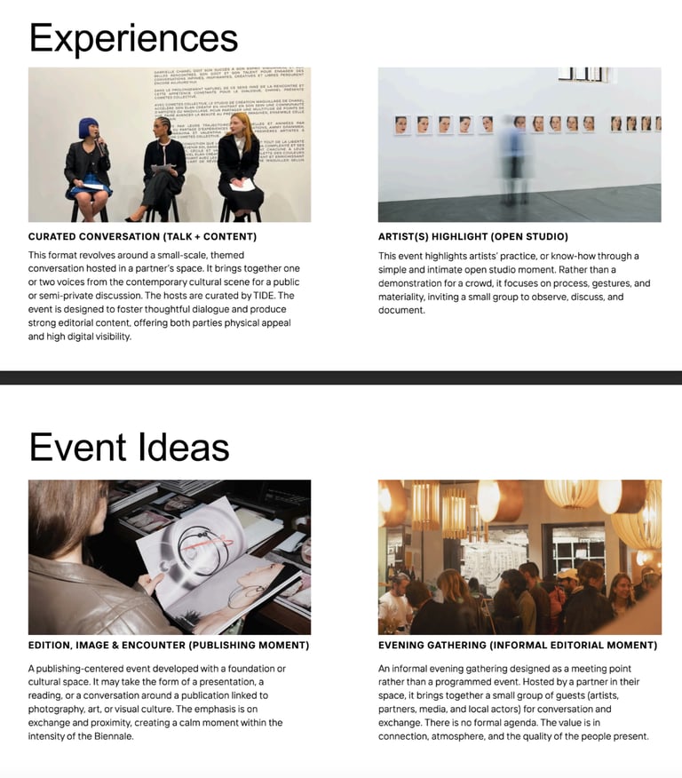 TIDE est un média culturel indépendant bilingue (FR/EN), dédié aux scènes artistiques émergentes, aux récits visuels contemporains. Il propose une revue papier et une plateforme numérique. Son lectorat est principalement composé de jeunes professionnels de la création visuelle, artistes, graphistes, photographes, ainsi que de passionnés d’art et de design.